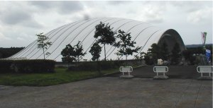 秋田県立中央公園は秋田市の南隣の川辺郡雄和町にあります。秋田空港のすぐ近くでミネソタ大学秋田校のキャンパスも近くにあります。空港の近くということでだいたい想像がつくと思いますが、住宅密集地から遠く離れた山の中にあり、空港から直行しようとすると“関所”があって“関銭150円也”をふんだくられます(秋田エアポートラインという有料道路なのですが、有料区間の真中に料金所があって料金所を通過するときに料金を取られるので、まさに関所の感じです。できたときから評判が悪いです。)